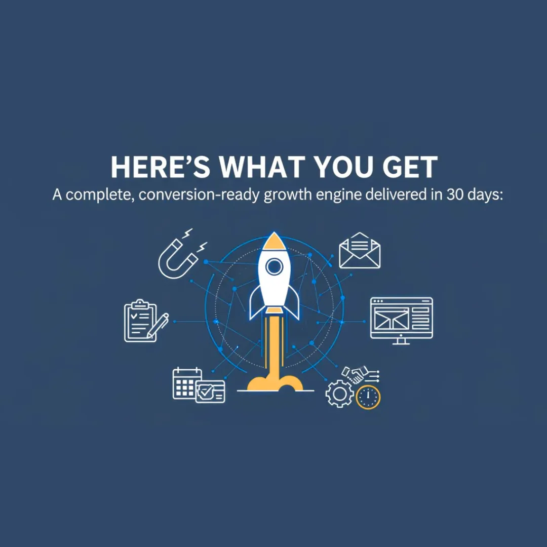 We achieve this by installing your entire client acquisition system — including site, funnel, emails, CRM, and more — in just 30 days.